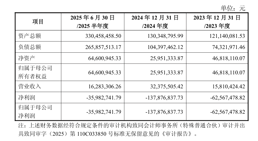 2023年度、2024年度及2025年上半年,数渡科技营业收入分别为1581.04万元、3237.55万元、1628.33万元,归母净利润分别为-6256.75万元、-1.38亿元、-3598.27万元。